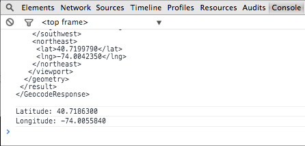 For this tutorial, we'll write a simple program that uses Google's Geocoding API to retrieve the latitude and longitude for a specific address e.g., 104 Franklin St, New York City. What makes Temboo especially powerful and useful is that, once you know how to use one API, you know how to work with any API in our Library.