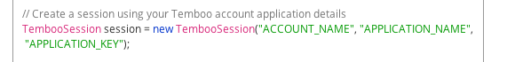 9 In order to run this sketch, your Temboo account name and application details must be included here: